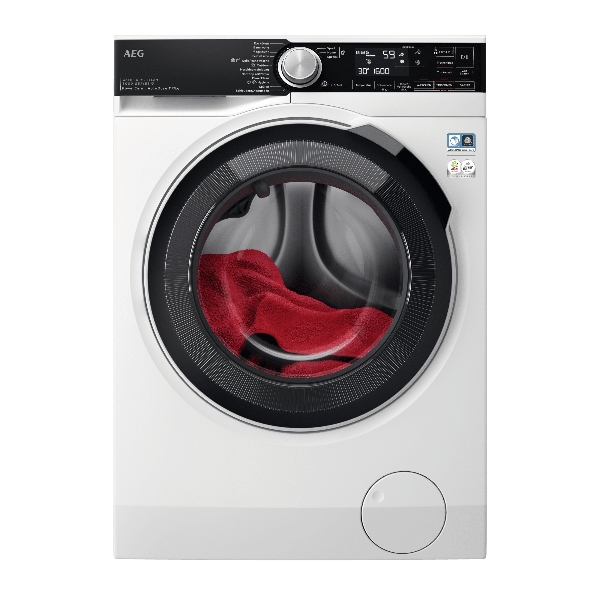Der AEG LWR8D80610 Waschtrockner ist vollgepackt mit Funktionen, die Ihnen das Waschen und Trocknen erleichtern und für perfekte Ergebnisse sorgen. Hier sind einige der wichtigsten Funktionen im Überblick: