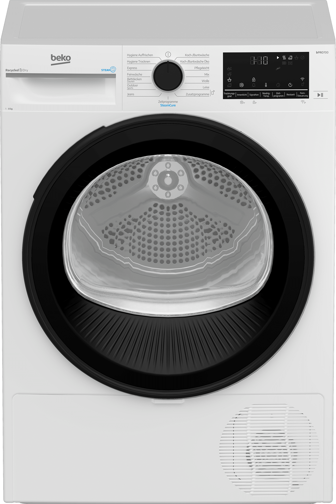 Der Beko B7T88209 verfügt über eine automatische Selbstreinigungsfunktion des Kondensators. Diese Funktion spült den Kondensator regelmäßig mit Wasser, um Ablagerungen von Flusen und Kalk zu entfernen. Dadurch wird die Effizienz des Trockners aufrechterhalten und die Lebensdauer verlängert. Sie müssen den Kondensator nicht manuell reinigen, was Ihnen Zeit und Mühe spart.