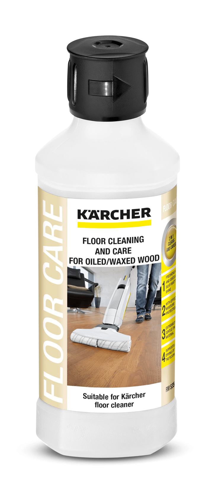 Das KÄRCHER RM 535 ist speziell für geölte und gewachste Holzböden entwickelt worden. Für andere Holzarten wie z.B. lackierte Holzböden empfehlen wir, ein entsprechendes, dafür geeignetes Reinigungsmittel zu verwenden, um Beschädigungen zu vermeiden. Informieren Sie sich in unserem Shop über weitere KÄRCHER Reinigungsmittel für verschiedene Bodenarten.