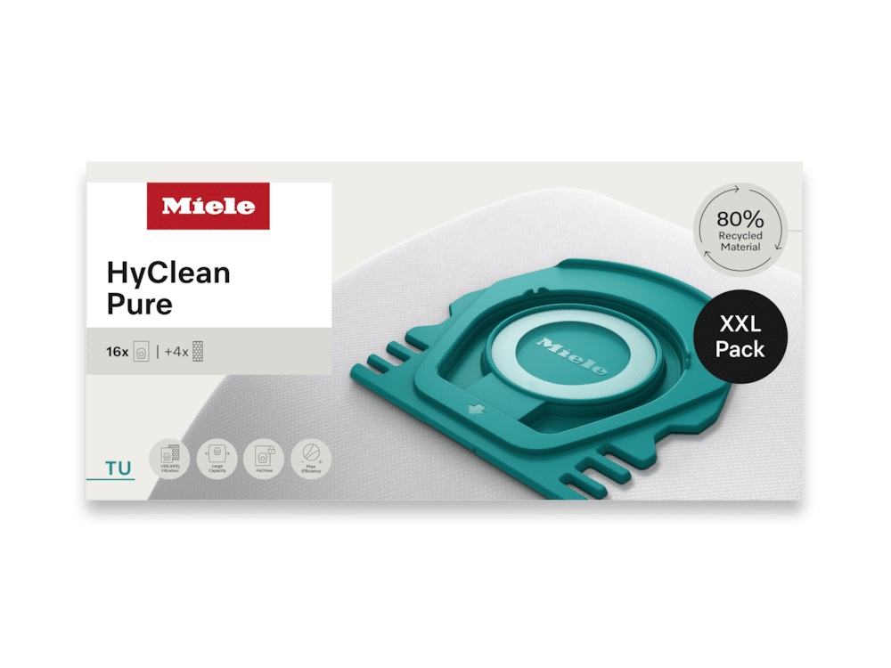 Der Name ist Programm: Die Miele XXL HyClean Pure TU Staubsaugerbeutel bieten ein extra großes Volumen, das deutlich über dem Standard liegt. Das bedeutet für Sie: Seltener Beutelwechsel und mehr Zeit für die schönen Dinge im Leben. Genießen Sie ununterbrochene Reinigungszyklen, ohne ständig an den nächsten Beutelwechsel denken zu müssen.