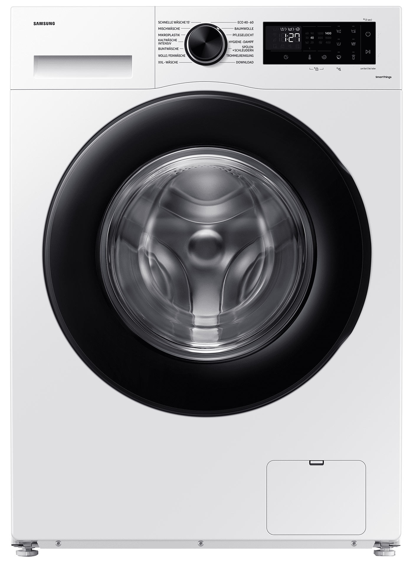 SmartThings: Mit der SmartThings App können Sie Ihre Waschmaschine bequem von überall aus steuern. Starten oder stoppen Sie Programme, erhalten Sie Benachrichtigungen über den Fortschritt und lassen Sie sich bei Bedarf Tipps zur optimalen Wäschepflege geben. So haben Sie immer die Kontrolle, egal wo Sie sich gerade befinden.